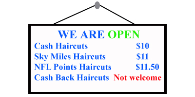 My bank recently offered a limited-time-only 3% Cash Back program. I can only imagine what would happen when you actually try to use it. “Hey you, get out my store!” The new rewards card these days is the card that rewards you with a discount for not using a rewards card. Thank you Justice Department and Congress for making every day ‘opposite day.’