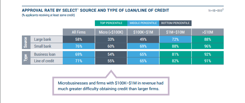 The Small Business Credit Survey released by the Federal Reserve revealed that small businesses like doing business with smaller banks mostly with rate of approval and customer satisfaction.