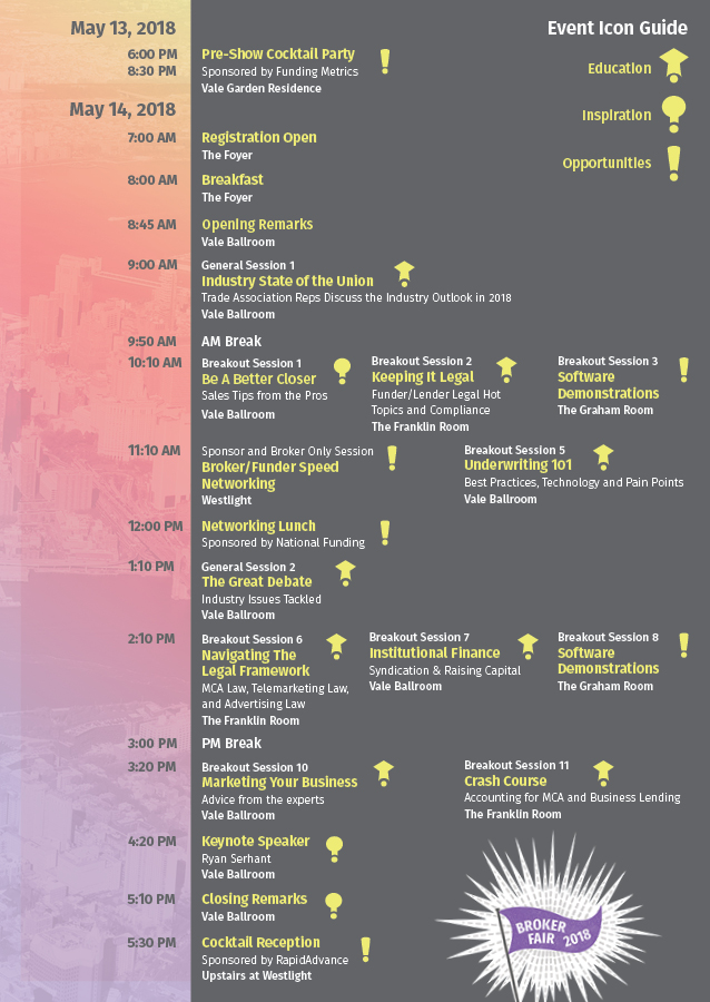 Broker Fair 2018 will be the largest gathering of merchant cash advance and business loan brokers in the country. Until now, there’s never been anything like it.