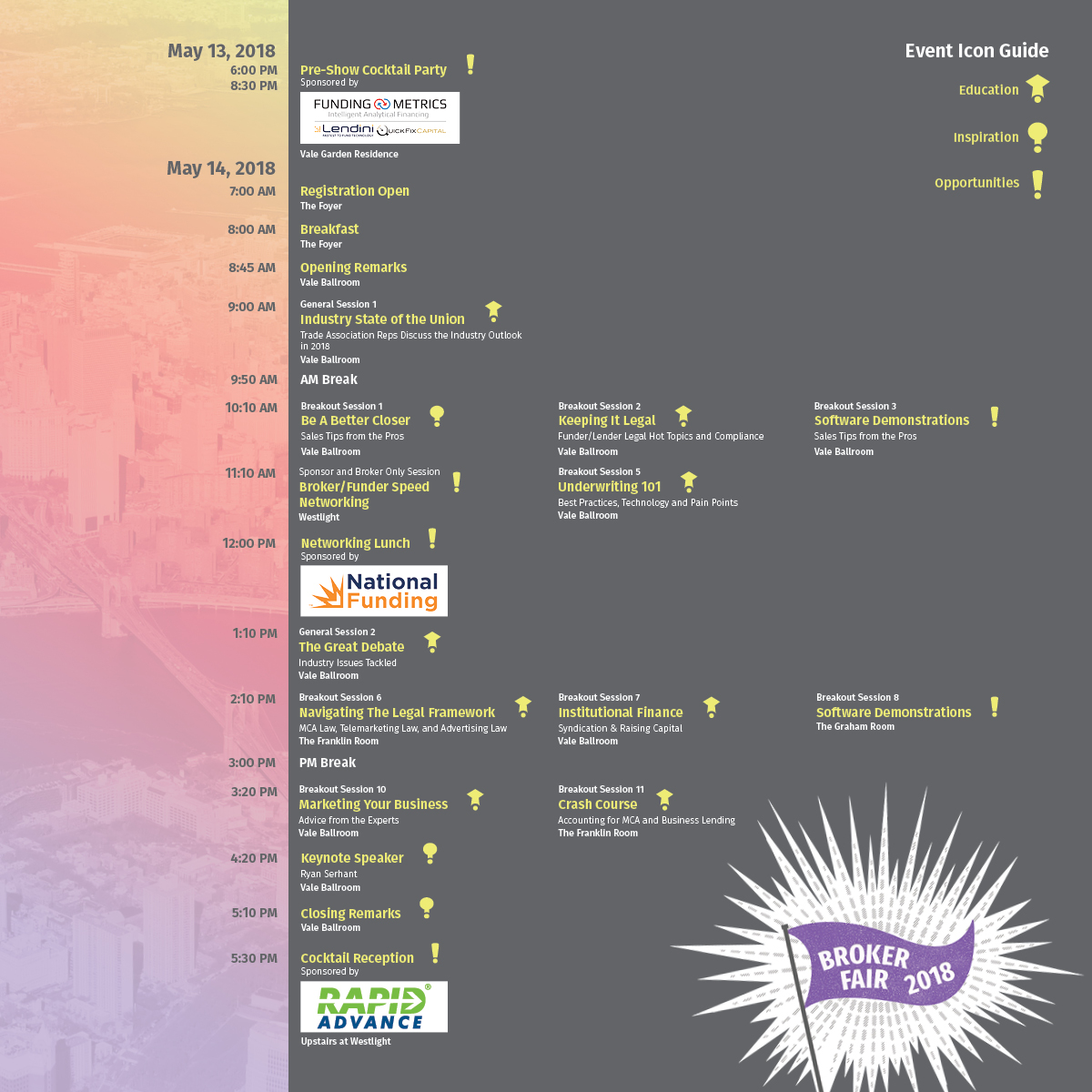 Later at the end of the day, the cocktail reception at Westlight, which is upstairs on the 22nd floor, will begin at 5:30pm. Westlight offers amazing outdoor views of the Manhattan skyline. That event is sponsored by RapidAdvance and all you need to enter is your Broker Fair badge.