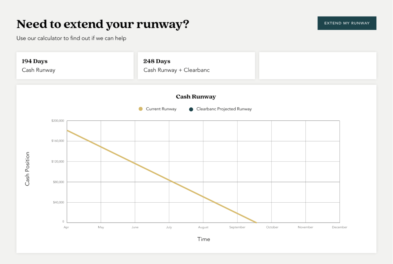 “All companies are concerned about one thing and that thing is runway: ‘how many months do I have left and how do we extend that?’ Clearbanc CEO Michele Romanow explained. “So we built this really cool product, where you can give us a little bit of information and we can show you how much runway you have today at your current economics, and then how much we could extend that runway.”