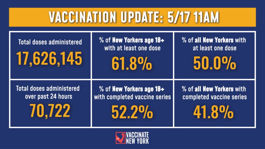 “Over half the population is fully vaccinated now, but we have more work to do on vaccinations,” Cuomo said. “We have to get back to life, and living, and do it the way New Yorkers do it. We have to do it quickly and robustly.”